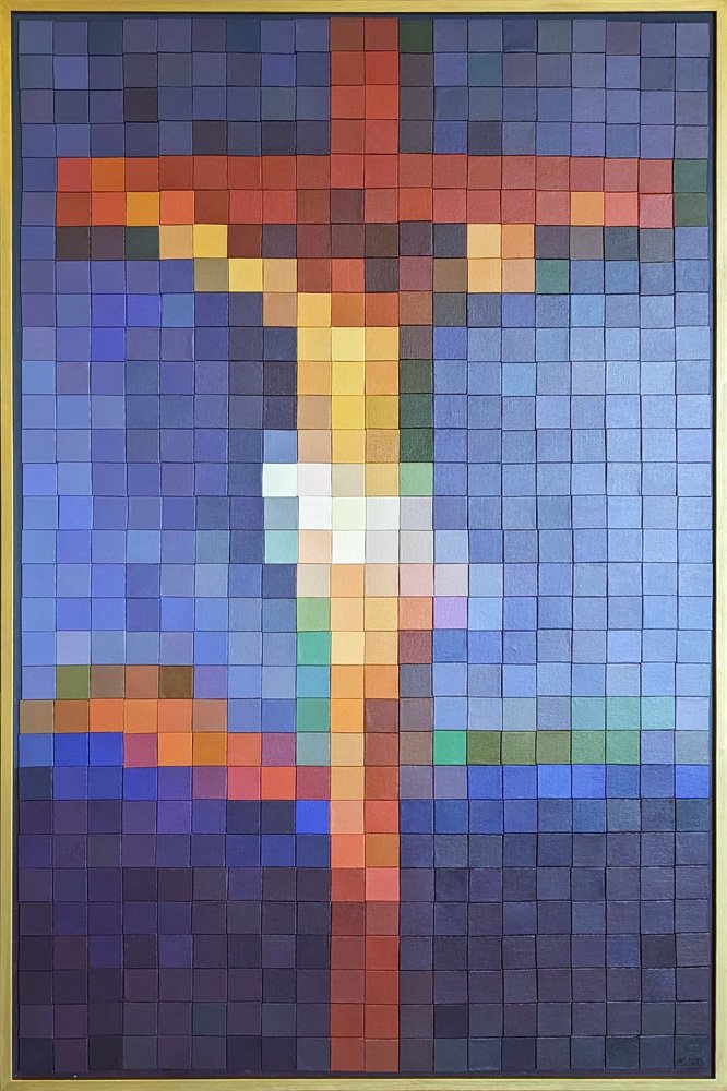 This is my eighth pixel painting, and the series works best with images that are deeply embedded in our collective memory, such as the pixel paintings of Frida Kahlo and the Beatles that some of you may have seen. Perhaps this painting should really have been the first, but then again, Jesus has always had to contend with a wide range of competing figures. Here he appears as the eighth, rendered in pixels, illustrating how the details of a long-standing, larger story continue to adapt to modern times.